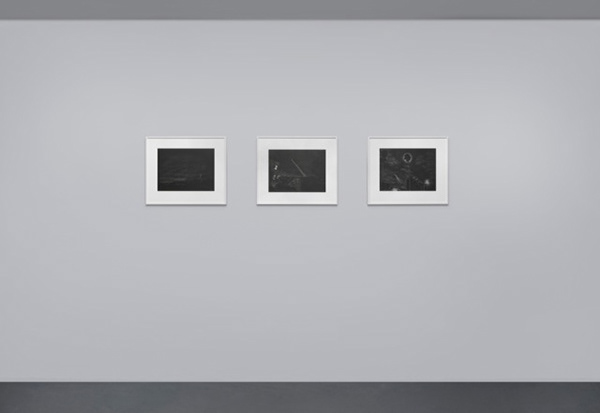 Ulrike Mohr: Spacial drawing of carbonized shingles, installation Natalia Stachon: Cross all your skies see the silent writing (Special Edition for Griffelkunst e.V.), mezzotints 2017/18 (Photos: Jens Ziehe, Berlin)